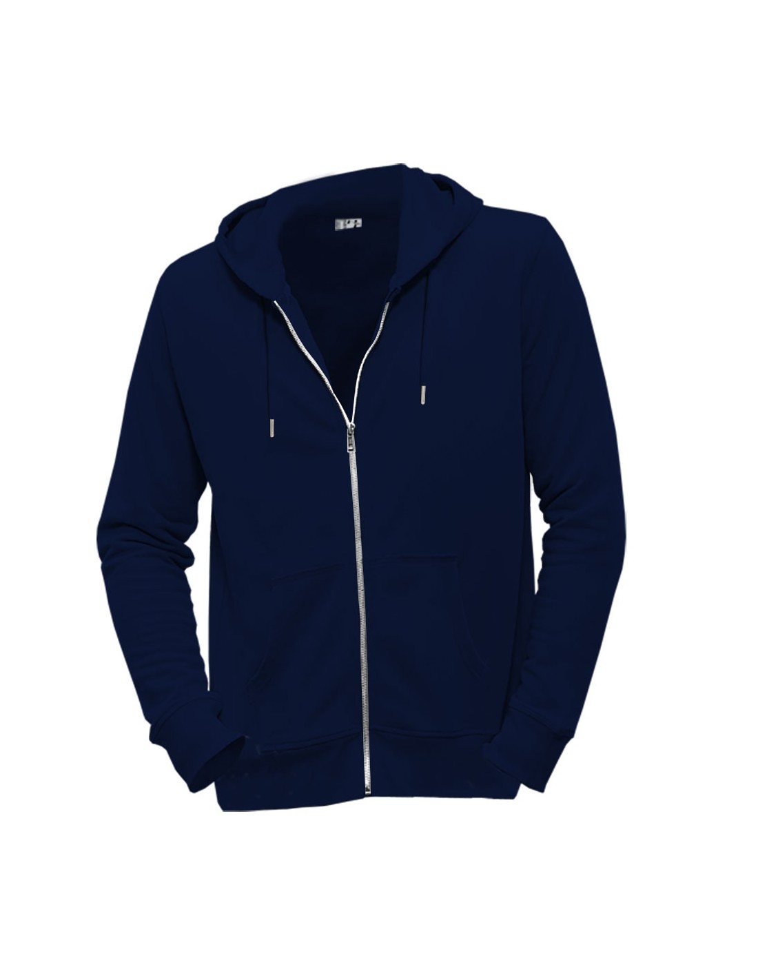 Kapuzensweat mit Reißverschluss. Känguru-Taschen.