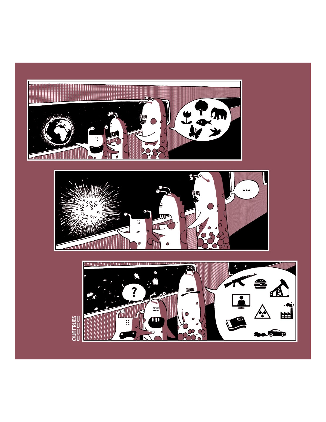 Die Kleidung von Quat'rues besteht aus Bio-Baumwolle, die mit Respekt den Menschen und ihrer Umwelt gegenüber hergestellt wurde... nicht zu vergessen die originellen Motive, die Ihrer Kleidung noch mehr Bedeutung verleihen!