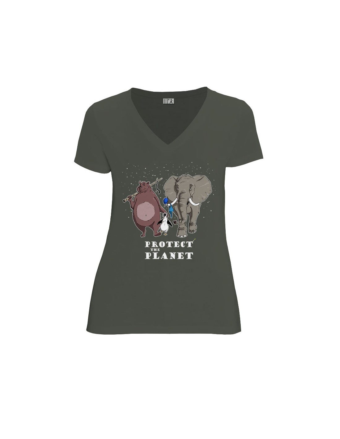T-shirt équitable coton bio col V AWARA "Protect the planet"