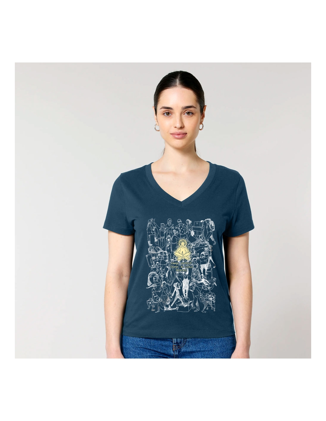 Organic and fair V-neck T-shirt AWARA "Meditate"